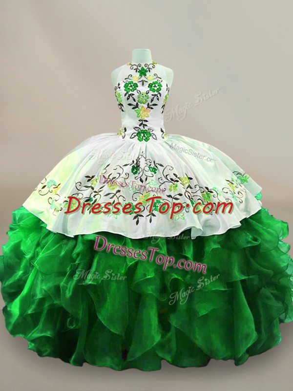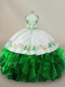 Fashionable Ball Gowns Quince Ball Gowns Green Halter Top Organza Sleeveless Floor Length Lace Up