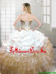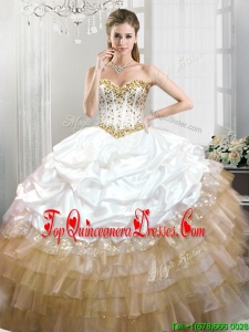Fashionable Beaded and Pick Ups Quinceanera Dress in White and Gold