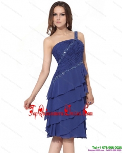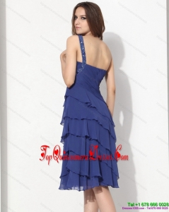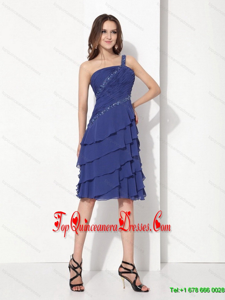 Fashionable Beaded One Shoulder Knee Length Damas Dresses with Ruffled Layers