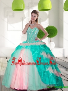 Fashionable Beading and Ruffled Layers Quinceanera Gowns in Multi Color for 2015