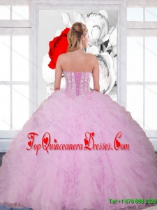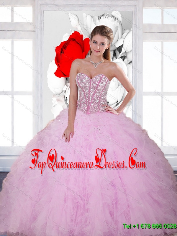 Fashionable Beading and Ruffles Sweetheart 2015 Quinceanera Dresses in Baby Pink