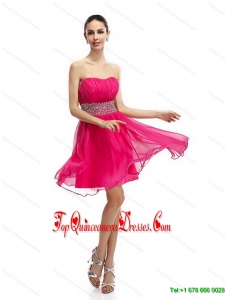 Fashionable Coral Red Strapless Short Damas Dresses with Ruching and Rhinestones