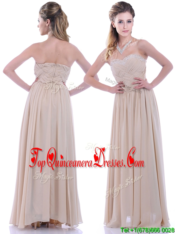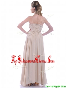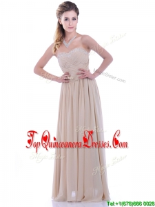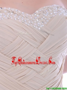 Fashionable Empire Champagne Chiffon Dama Dress with Beading and Ruching