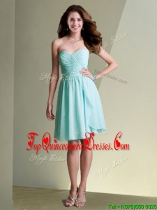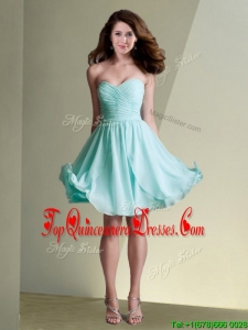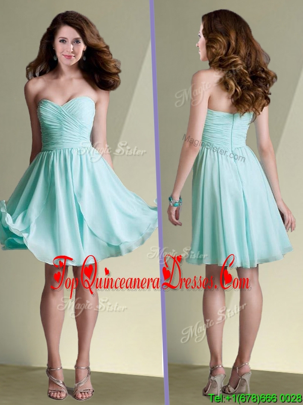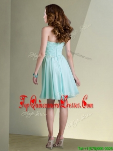 Fashionable Empire Ruched Chiffon Short Dama Dress in Aqua Blue