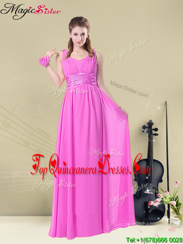 Fashionable Empire Straps Gorgeous Dama Dresses with Ruching and Belt