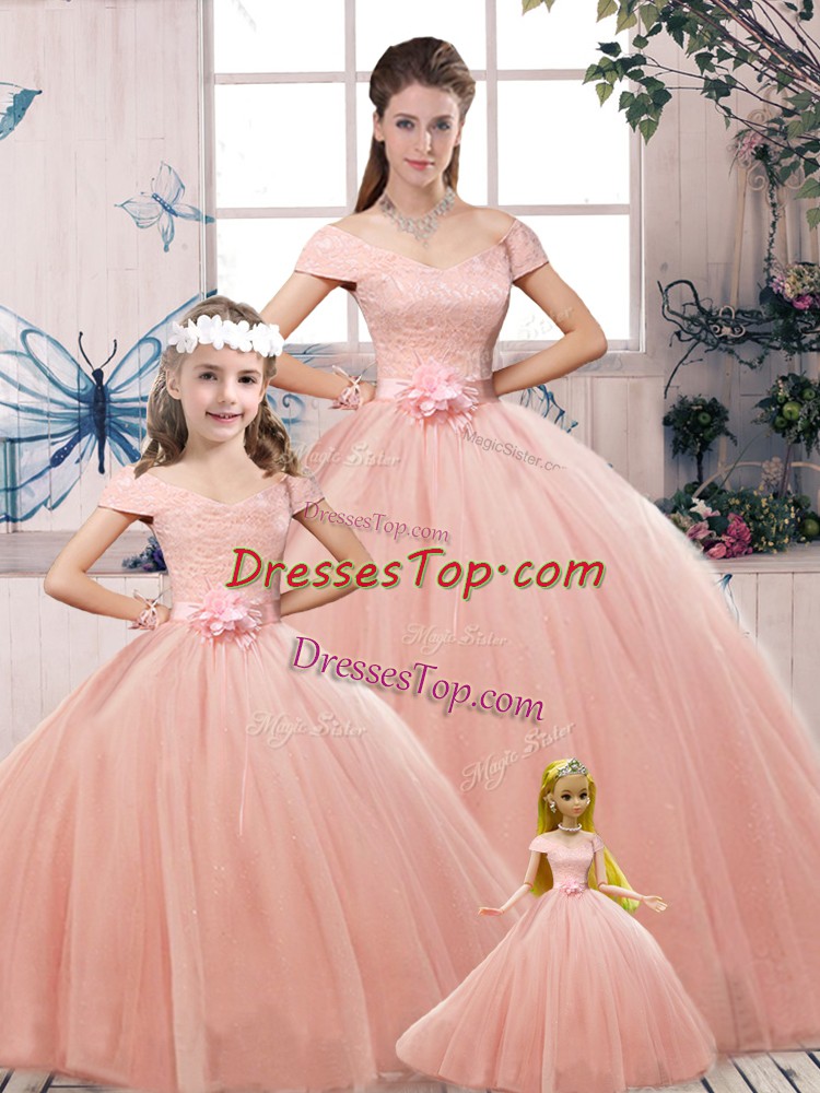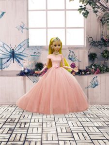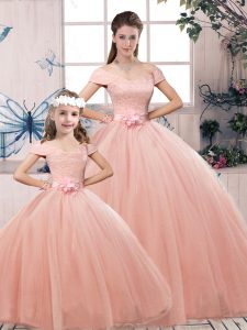 Fashionable Floor Length Ball Gowns Short Sleeves Pink Quinceanera Gown Lace Up
