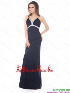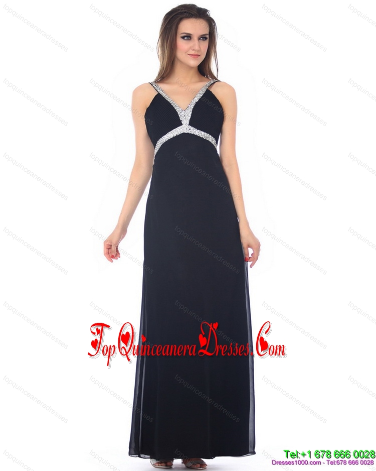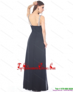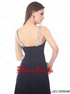 Fashionable Floor Length Beading Black Dama Dress for 2015