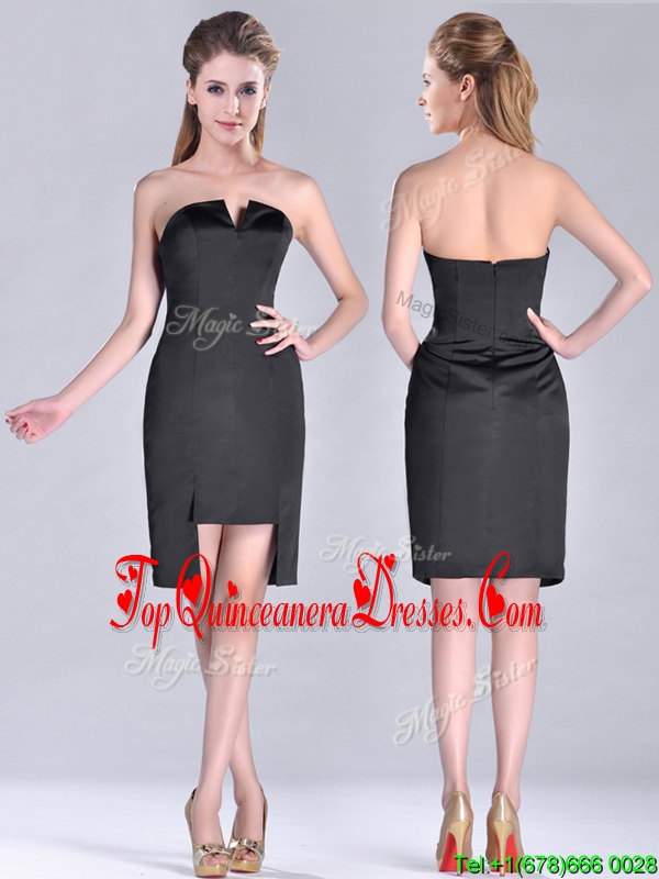 Fashionable Front Short Back Long V Neck Dama Dress in Black