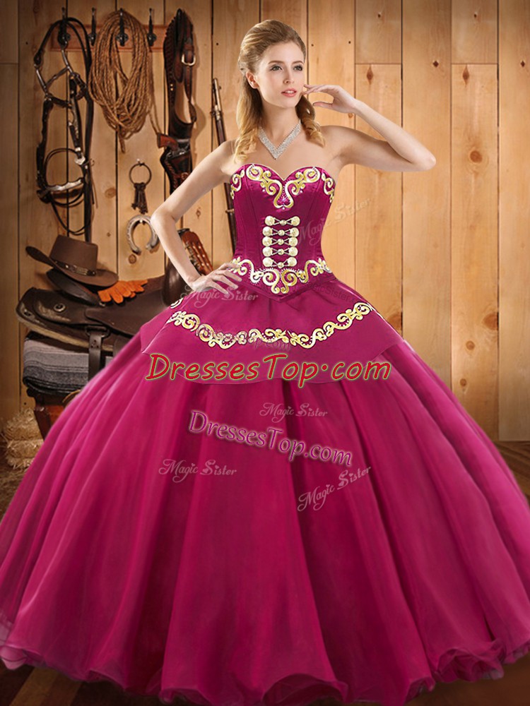 Fashionable Fuchsia Tulle Lace Up Sweetheart Sleeveless Floor Length 15th Birthday Dress Ruffles