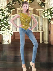 Fashionable Gold Ball Gowns Tulle Bateau Sleeveless Beading and Ruffled Layers Floor Length Zipper Sweet 16 Dresses