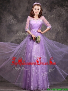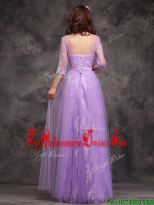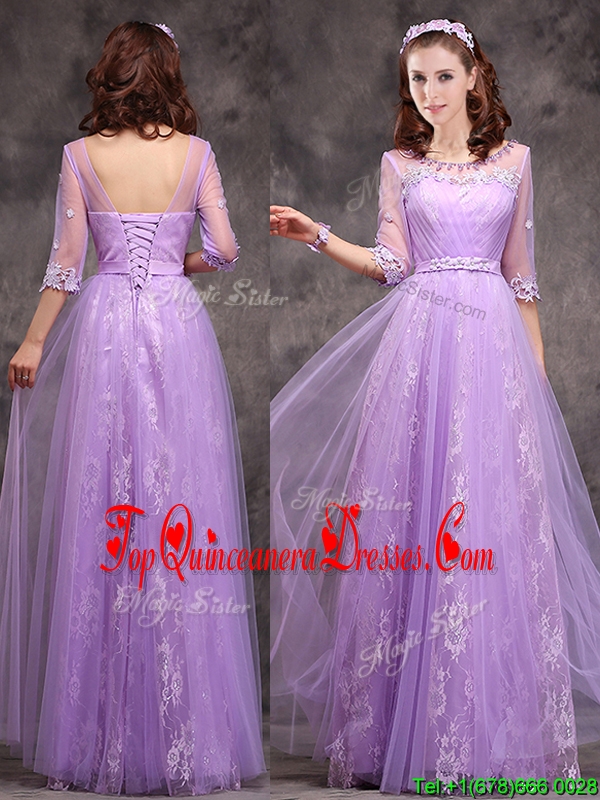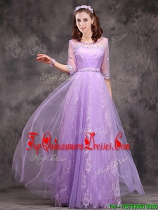 Fashionable Half Sleeves Lavender Dama Dress with Appliques and Beading