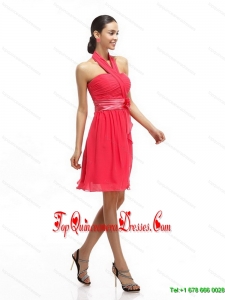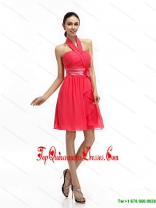 Fashionable Halter Top Damas Dresses with Ruching and Hand Made Flowers