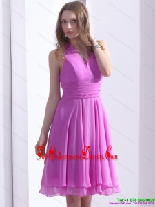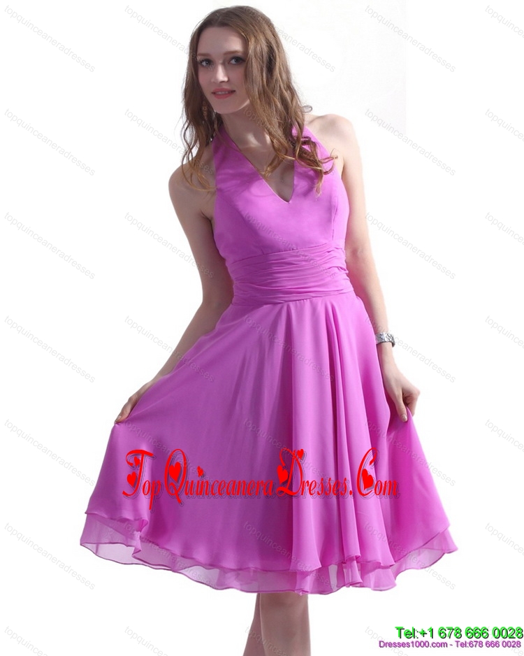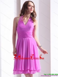 Fashionable Halter Top Knee Length 2015 Damas Dresses with Ruching