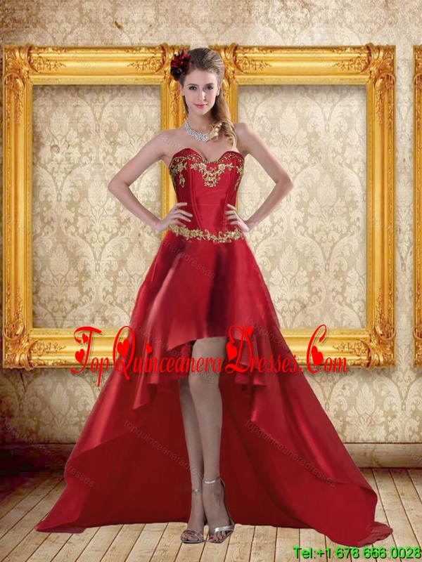 Fashionable High Low Sweetheart Wine Red Beading Quinceanera Dama Dresses