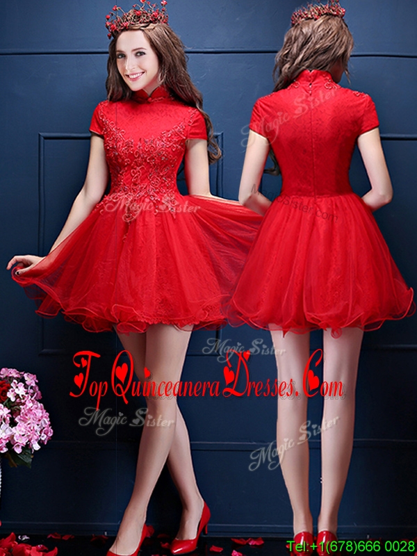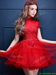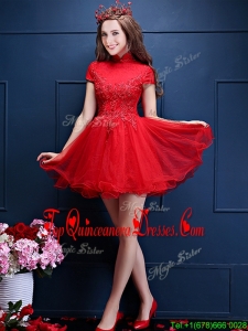 Fashionable High Neck Short Sleeves Dama Dress with Appliques and Beading