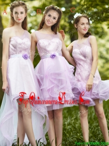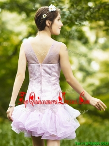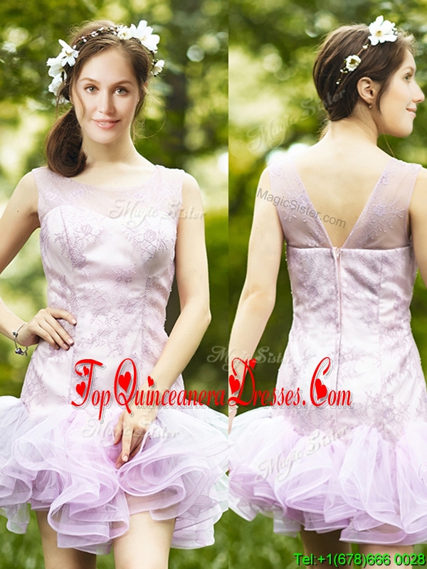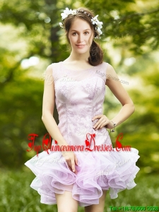 Fashionable Laced and Ruffled Short Quinceanera Dama Dress in Lavender