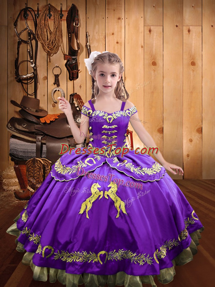 Fashionable Lavender Little Girls Pageant Dress Sweet 16 and Quinceanera with Beading and Embroidery Off The Shoulder Sleeveless Lace Up
