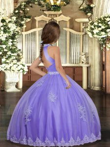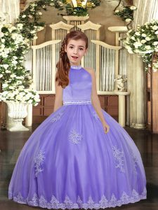 Fashionable Lavender Little Girls Pageant Gowns Party and Sweet 16 and Wedding Party with Appliques High-neck Sleeveless Backless