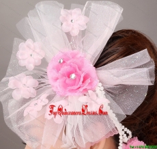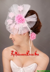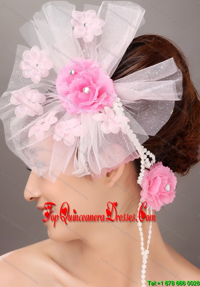 Fashionable Light Pink Tulle Hand Made Flowers Beading Fascinators For Party