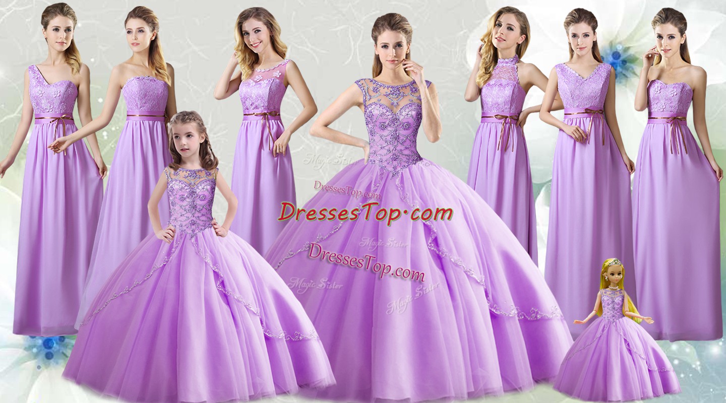 Fashionable Lilac Sleeveless Tulle Lace Up Sweet 16 Quinceanera Dress for Military Ball and Sweet 16 and Quinceanera