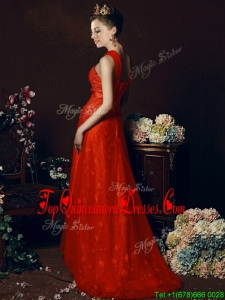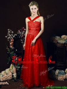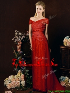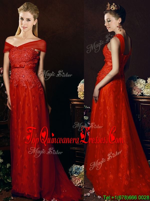 Fashionable Off The Shoulder Belted and Laced Damas Dress with Brush Train
