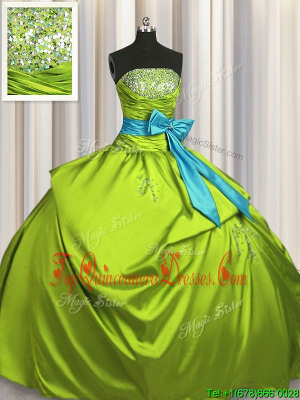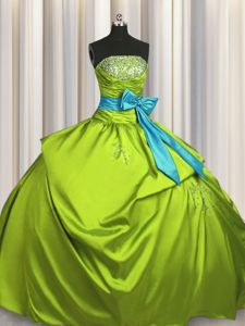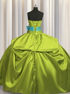 Fashionable Olive Green Ball Gowns Beading and Ruching and Bowknot Sweet 16 Dress Lace Up Taffeta Sleeveless Floor Length