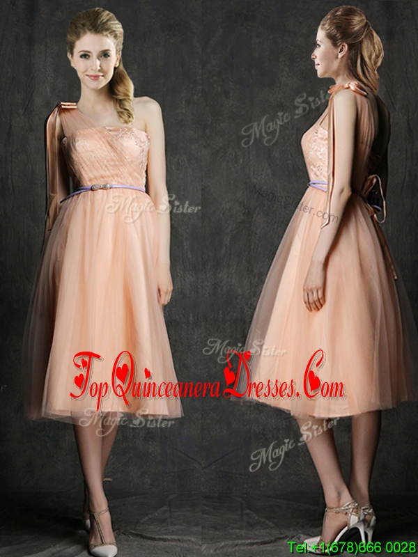 Fashionable One Shoulder Damas Dress with Sashes and Bowknot
