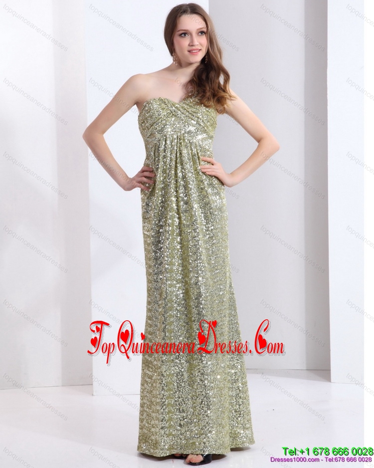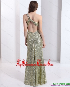 Fashionable One Shoulder Floor Length Sequined Damas Dress for 2015