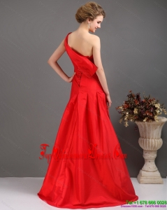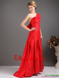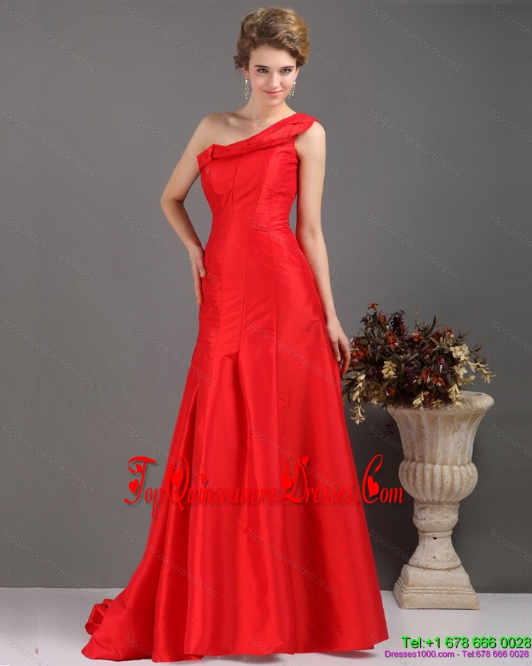 Fashionable One Shoulder Pleated Red Damas Dresses with Brush Train