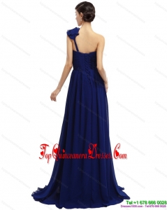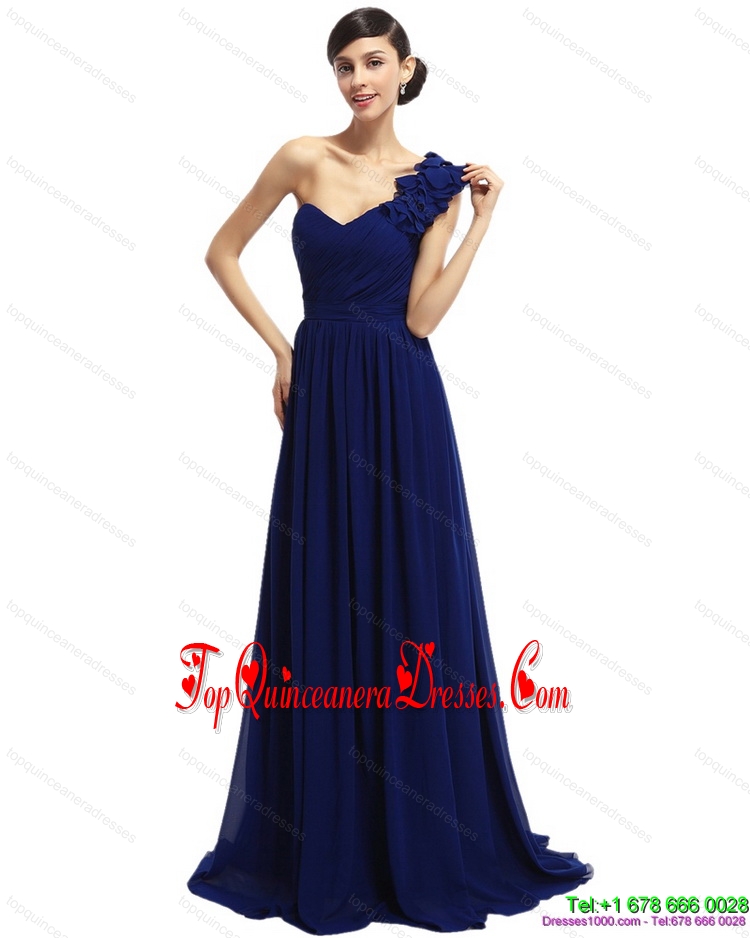 Fashionable One Shoulder Ruffled Navy Blue Damas Dresses with Hand Made Flower