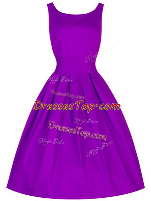 Fashionable Purple Scoop Neckline Ruching Damas Dress Sleeveless Lace Up