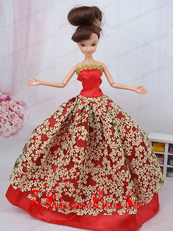 Fashionable Red Ball Gown Barbie Doll Dress