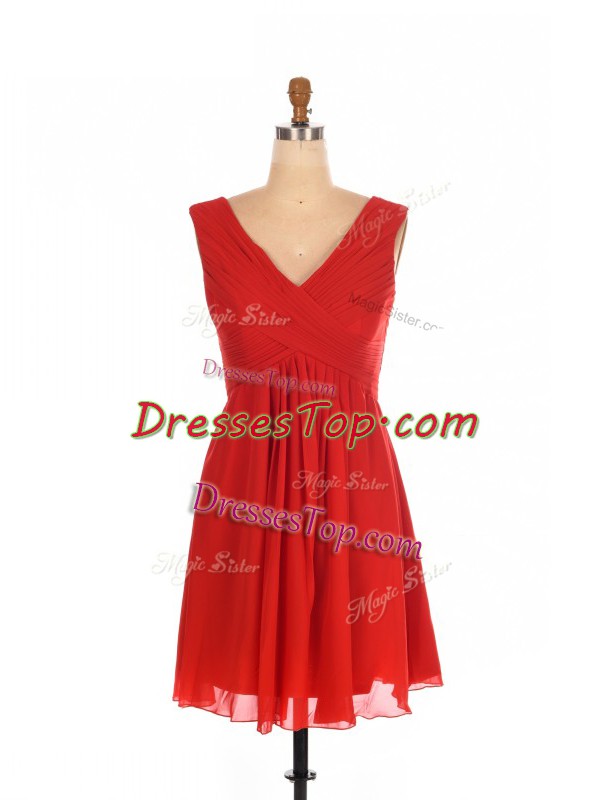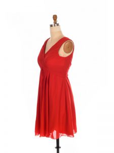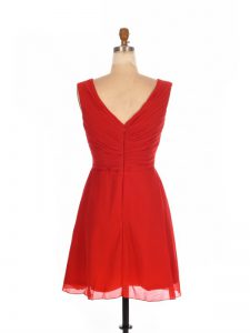 Fashionable Red Empire Ruching Quinceanera Dama Dress Zipper Chiffon Sleeveless Mini Length