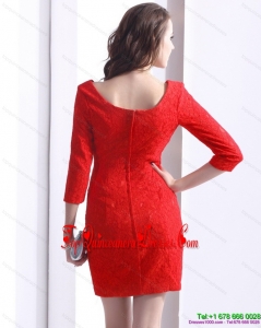 Fashionable Red Mini Length 2015 Dama Dress with Lace