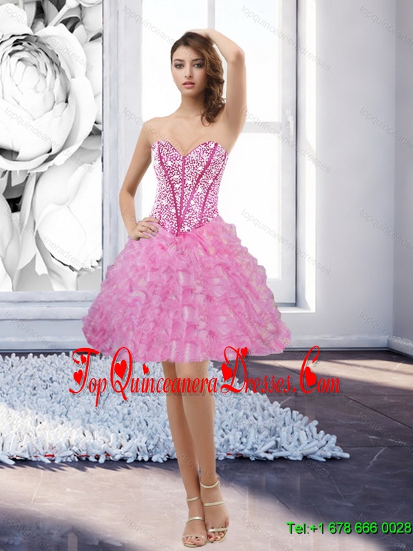 Fashionable Rose Pink Sweetheart 2015 Damas Dress with Beading and Ruffles