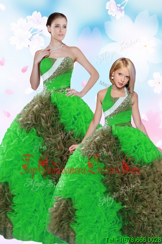Fashionable Ruffled Ball Gowns 15 Quinceanera Dress Orange Sweetheart Organza Sleeveless Lace Up