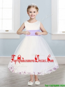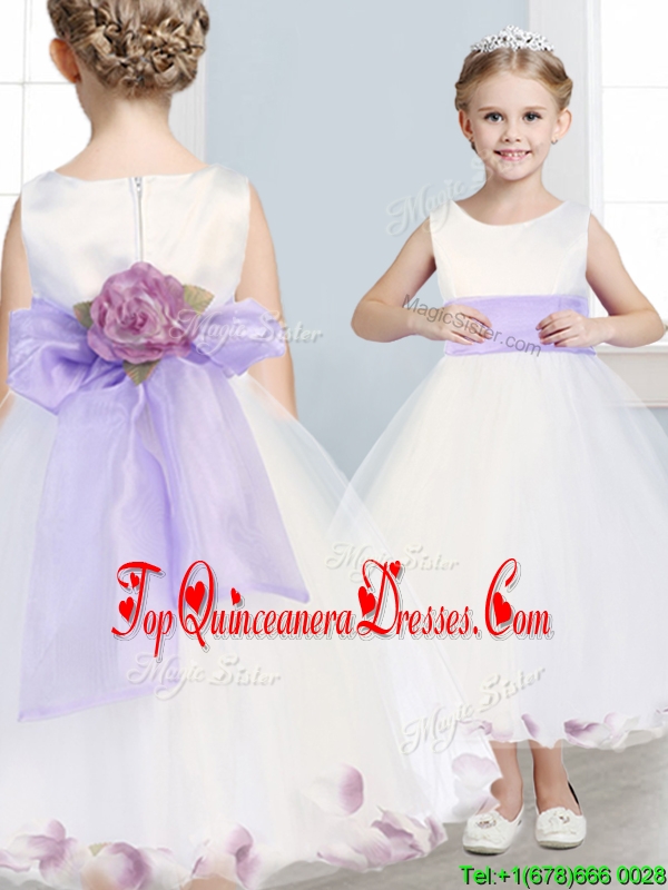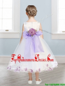 Fashionable Scoop Hand Made Flowers and Appliques New Arrival Kid Pageant Dresses in Whit