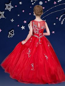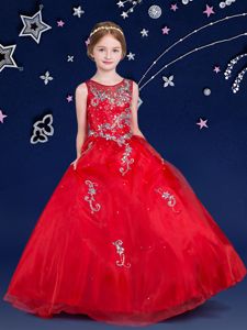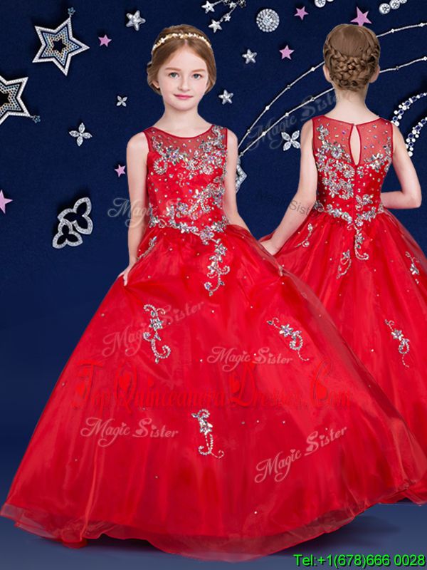 Fashionable Scoop Red Organza Zipper Winning Pageant Gowns Sleeveless Floor Length Beading and Appliques