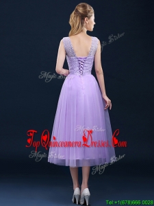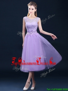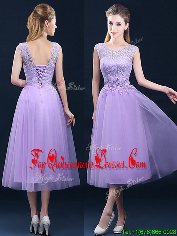 Fashionable See Through Laced and Applique Damas Dress in Tea Length
