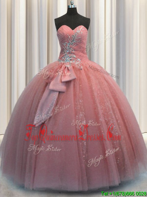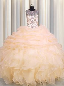 Fashionable See Through Peach Sweet 16 Quinceanera Dress Military Ball and Sweet 16 and Quinceanera and For with Beading and Ruffles and Pick Ups Scoop Sleeveless Lace Up