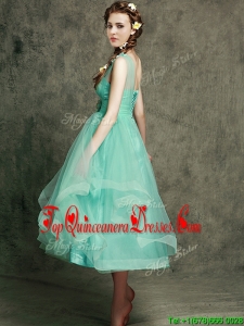 Fashionable See Through Straps Damas Dress with Appliques and Hand Made Flowers