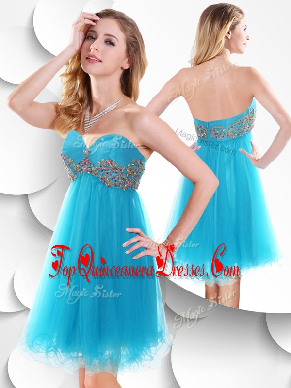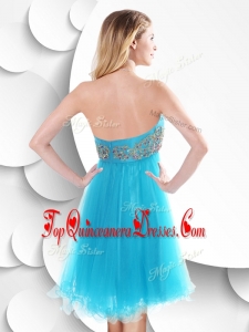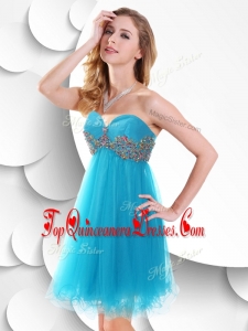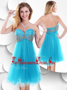 Fashionable Short Baby Blue Damas Dress with Beading