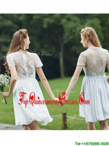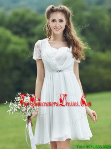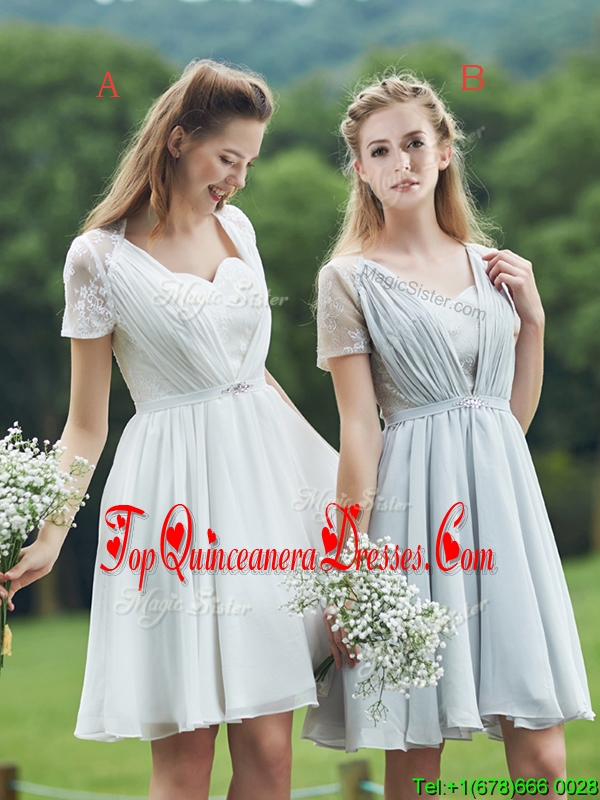 Fashionable Short Sleeves Damas Dress with Belt and Lace