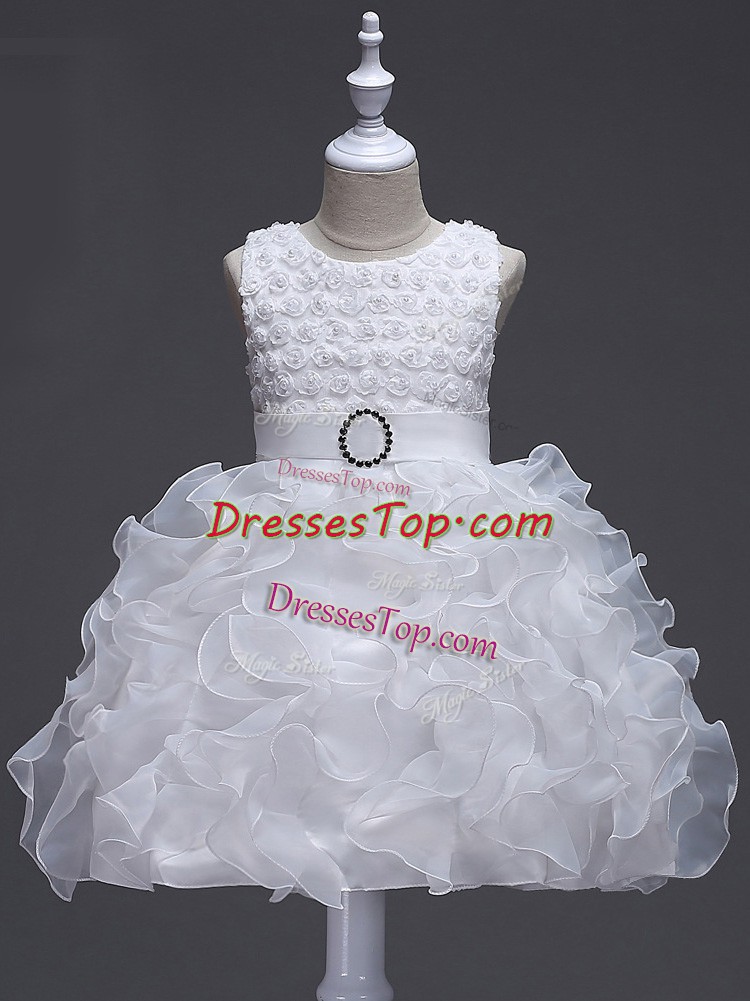 Fashionable Sleeveless Lace Up Knee Length Ruffles and Belt Pageant Dress for Girls