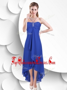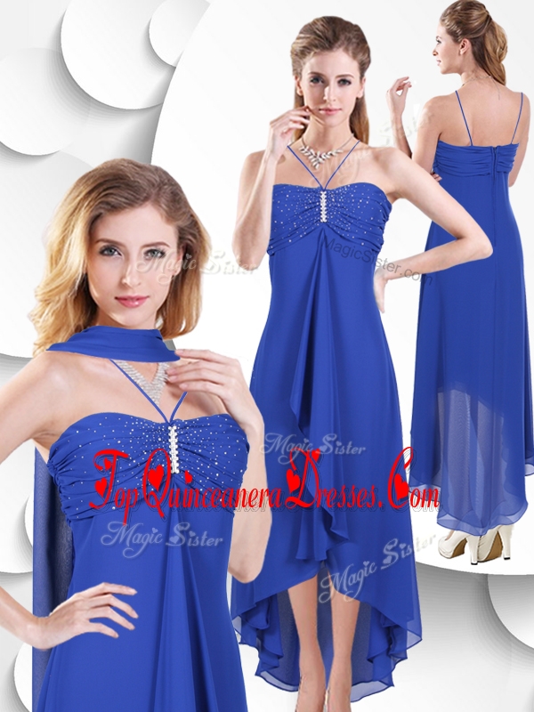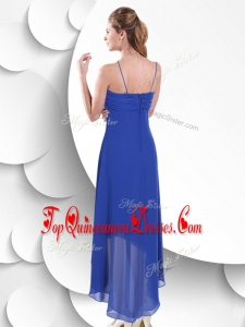 Fashionable Spaghetti Straps High Low Blue Damas Dress with Beading