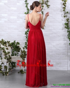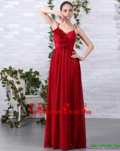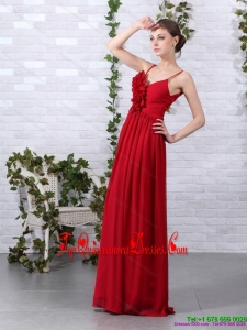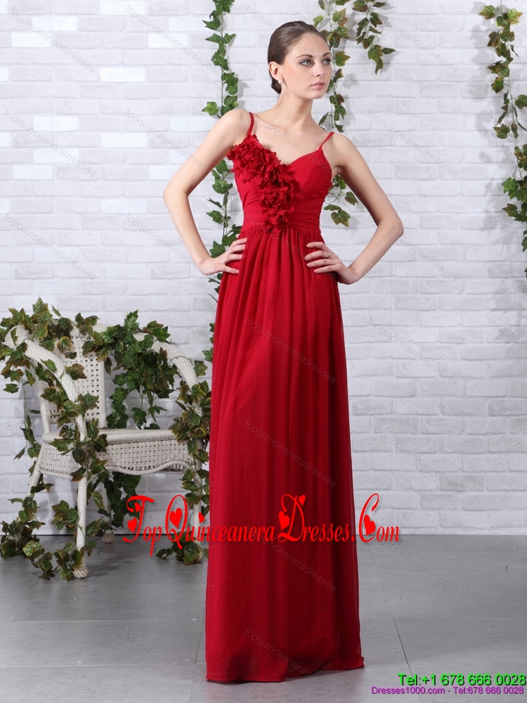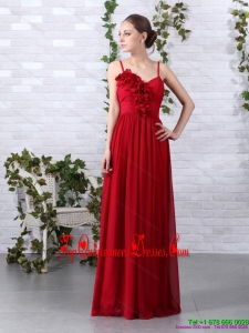 Fashionable Spaghetti Straps Long Damas Dresses with Ruching and Hand Made Flowers