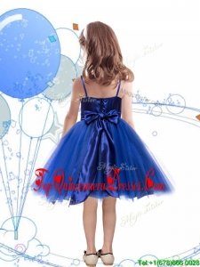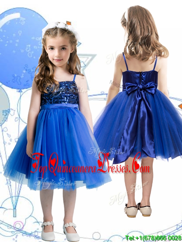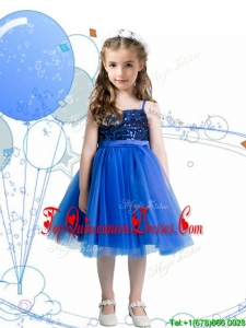 Fashionable Spaghetti Straps Royal Blue New Arrival Kid Pageant Dresses with Sashes and Sequins