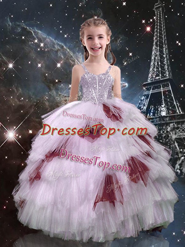 Fashionable Straps Sleeveless Lace Up Little Girl Pageant Gowns White Tulle