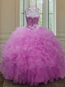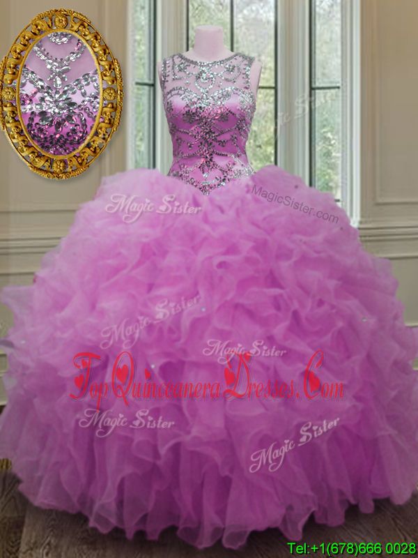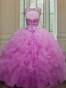 Fashionable Tulle Scoop Sleeveless Zipper Beading and Ruffles 15 Quinceanera Dress in Multi-color
