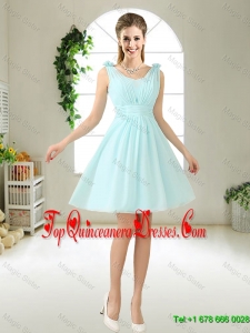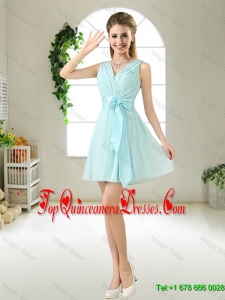 Fashionable V Neck Bowknot Dama smaid Dresses in Mini Length